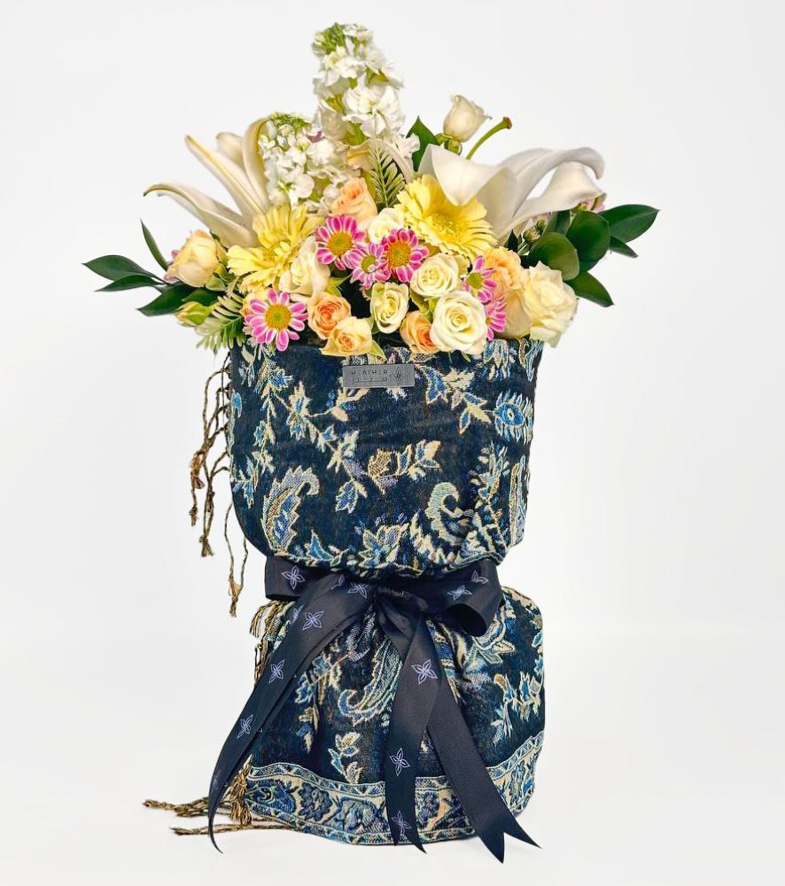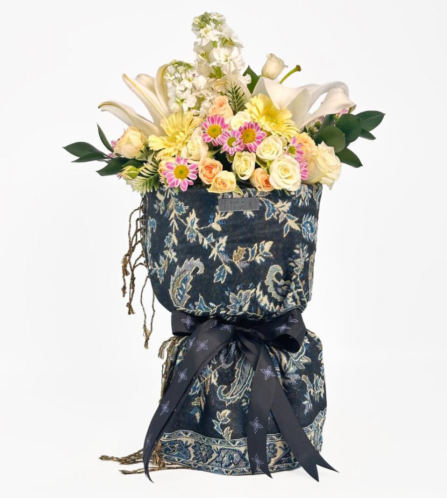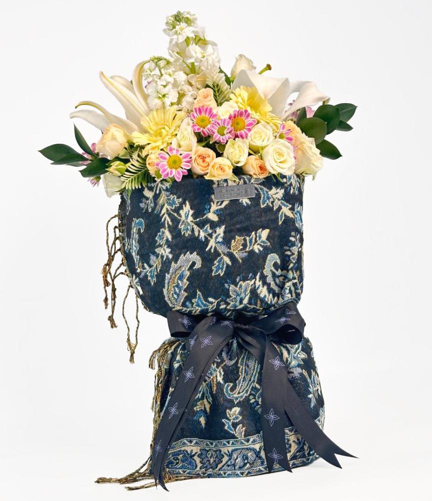 - الشال الكشميري: يضيف لمسة من الفخامة والنعومة على الباقة.