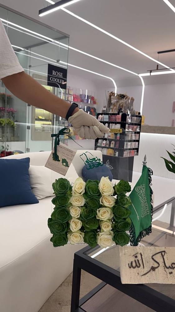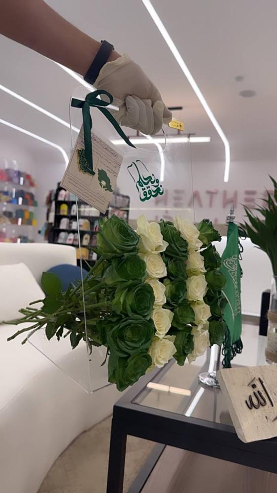 تُكمل بروش اليوم الوطني المعلق على الأستاند، ليعبر عن الفخر والانتماء للوطن، مما يُضفي طابعًا وطنيًا مميزًا.
