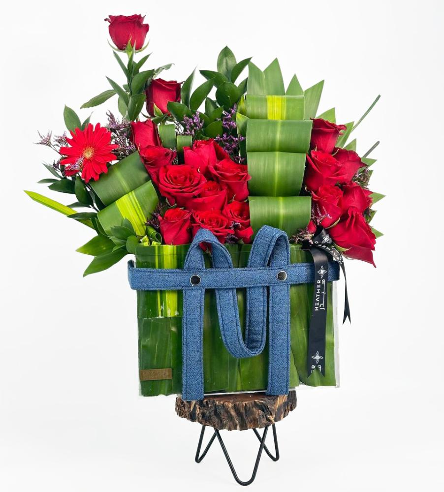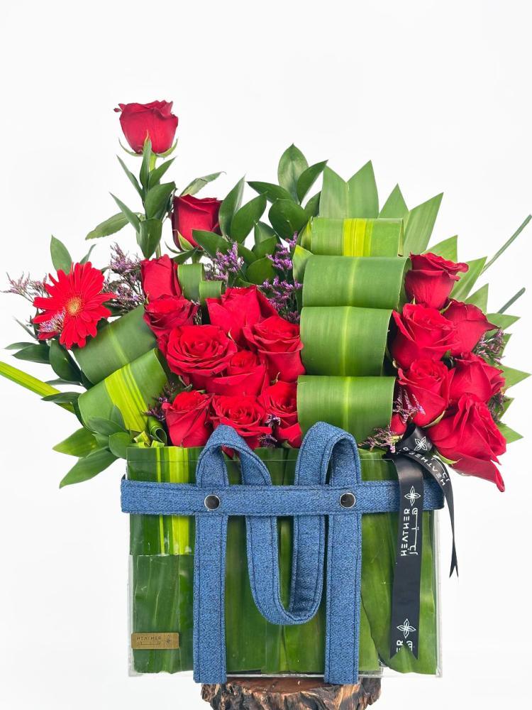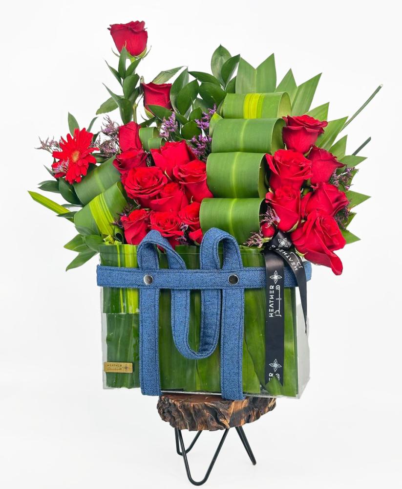 هذه الباقة تجمع بين أزهار مختارة بعناية وضعت داخل شنطة أكريلك عصرية تضيف لمسة من الفخامة والحداثة إلى أي مكان.