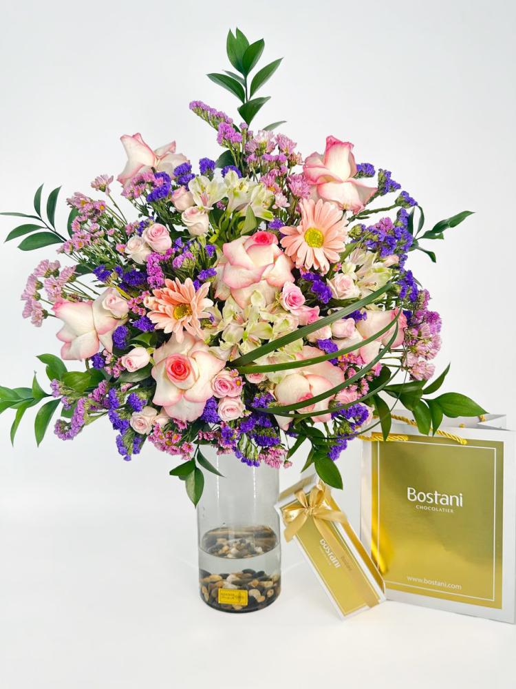 نسقت هذه الهدية الأنيقة بالتعاون مع بستاني وفريقنا المبدع بتنسيق الأزهار لتكون الهدية المثالية لجميع مناسباتكم السعيدة.