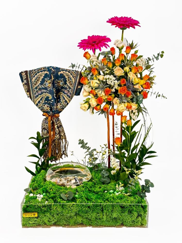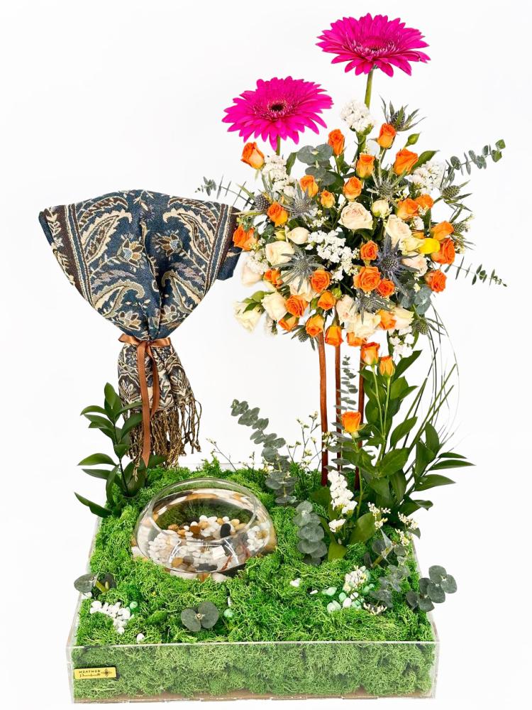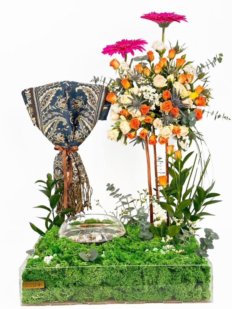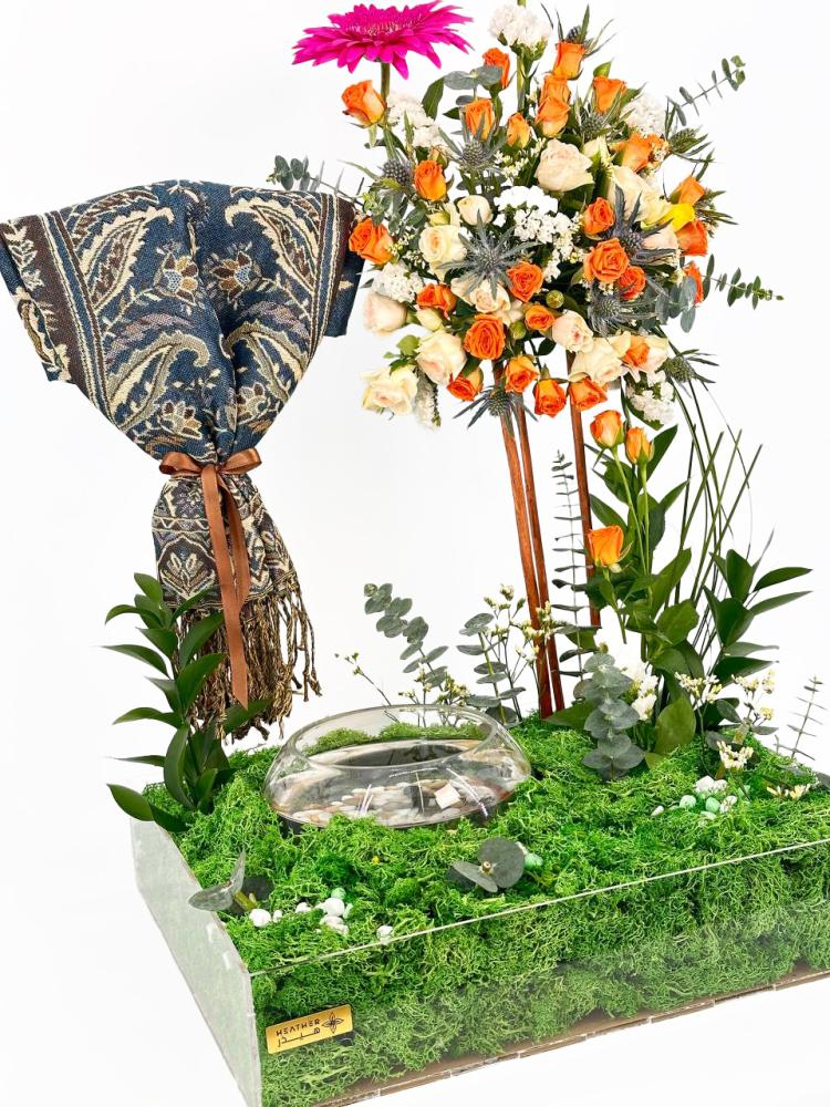بوكس أكريليك فاخر بهدايا وأزهار أنيقة