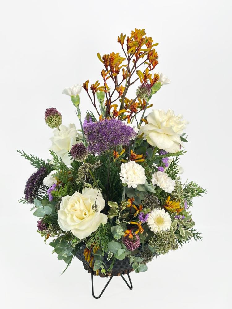 بفضل أزهار الجلبيرا البيضاء، الليبس الأصفر، والبيتوس فوريا الأخضر، تعكس الفازة توازناً مثالياً بين البساطة والرفاهية. كما تضيف أوراق السايفرس، اليوكاليبتوس، والشجر الأخضر رونقاً طبيعياً متناغماً. هذه الفازة ليست مجرد عنصر ديكور، بل هي قطعة فنية ترفع مستوى الأناقة في منزلك.
