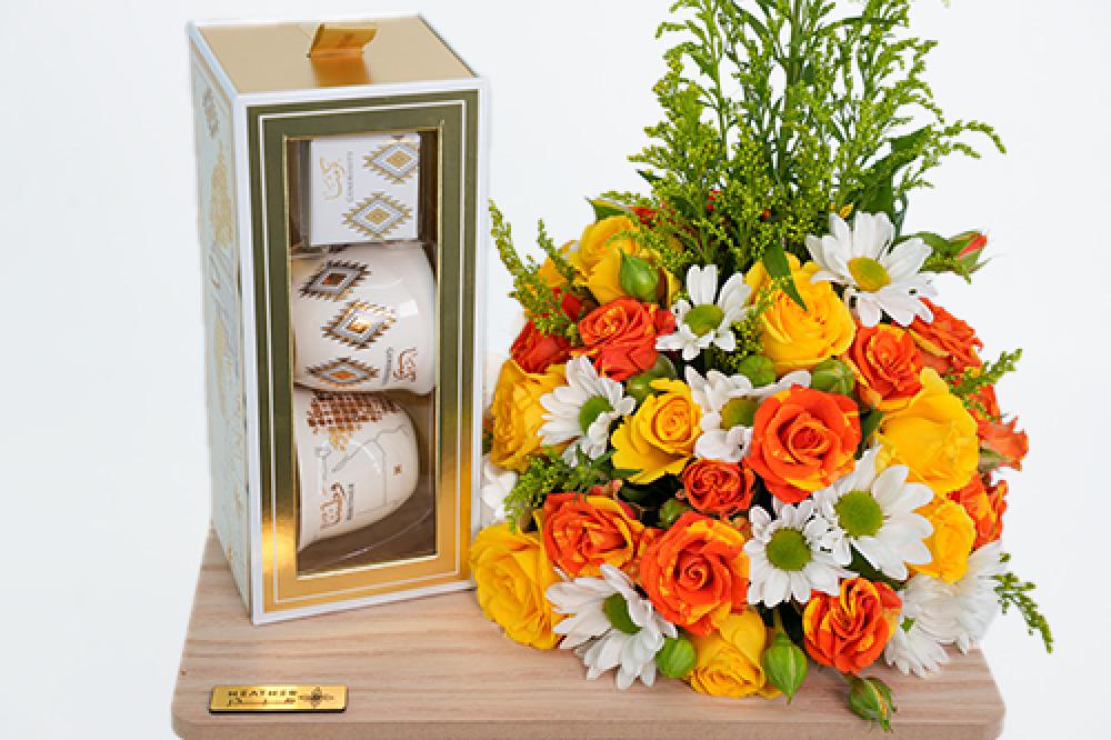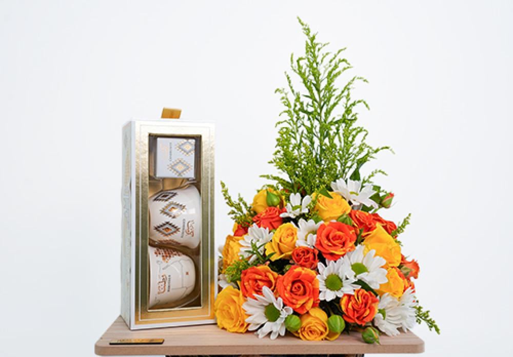 هدية أنيقة تم إعدادها بالتعاون بين بستاني للشوكولاته وفنجالين قهوة منحوتة بكلمة كرمنا السعودية وفريقنا المبدع في تنسيق الأزهار، لتكون الهدية المثالية للمناسبات السعيدة: